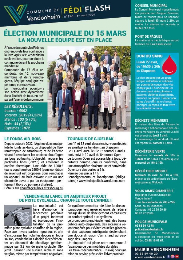 Pour communiquer avec les habitants de manière traditionnelle par l’imprimé, le service communication de la Ville de Vendenheim vous propose deux parutions ayant chacune leur rôle et leur spécificité.
